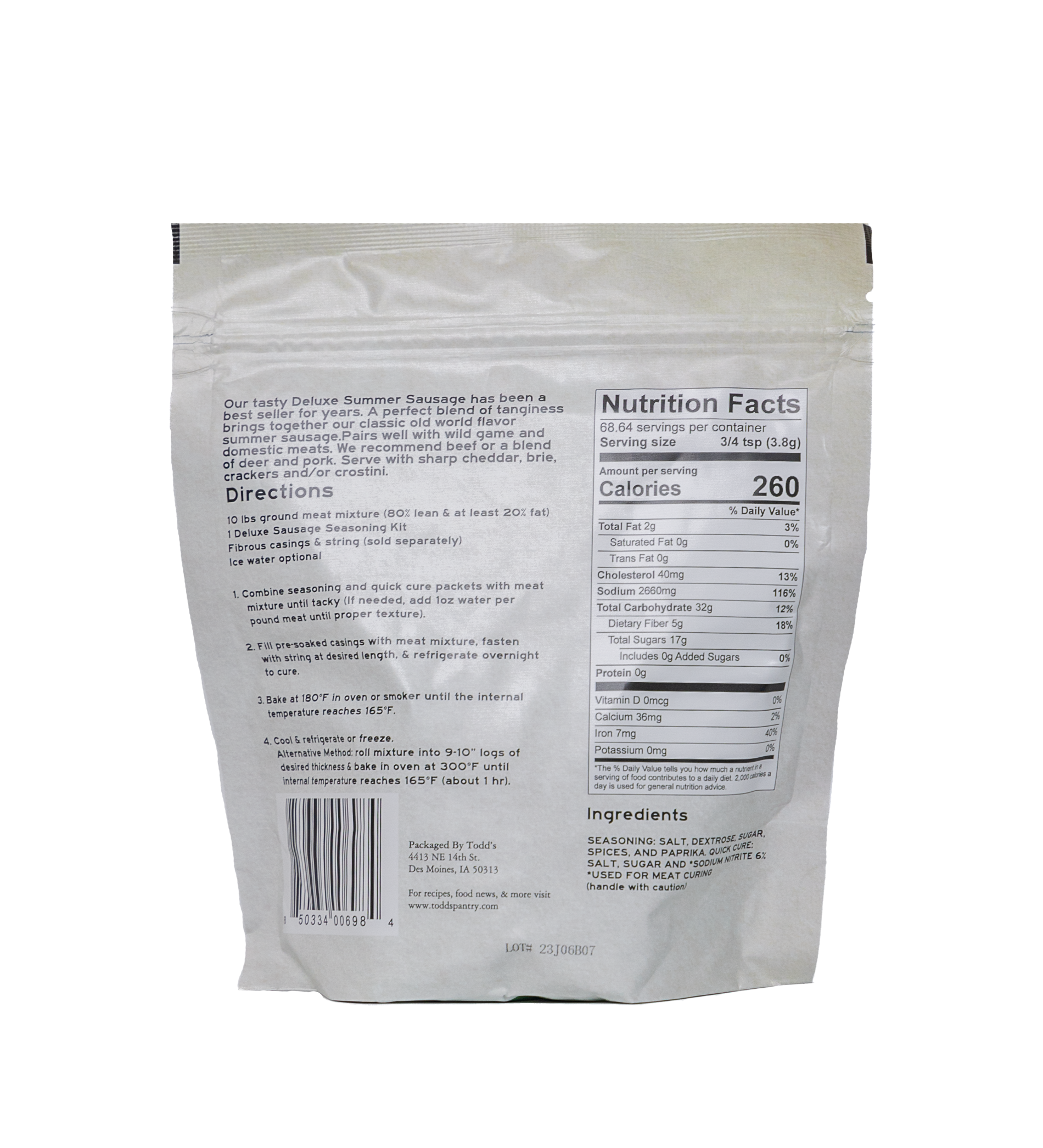 Kit Includes: 8.8 oz Seasoning, 0.4 oz Quick Cure. Yields 10 lbs.