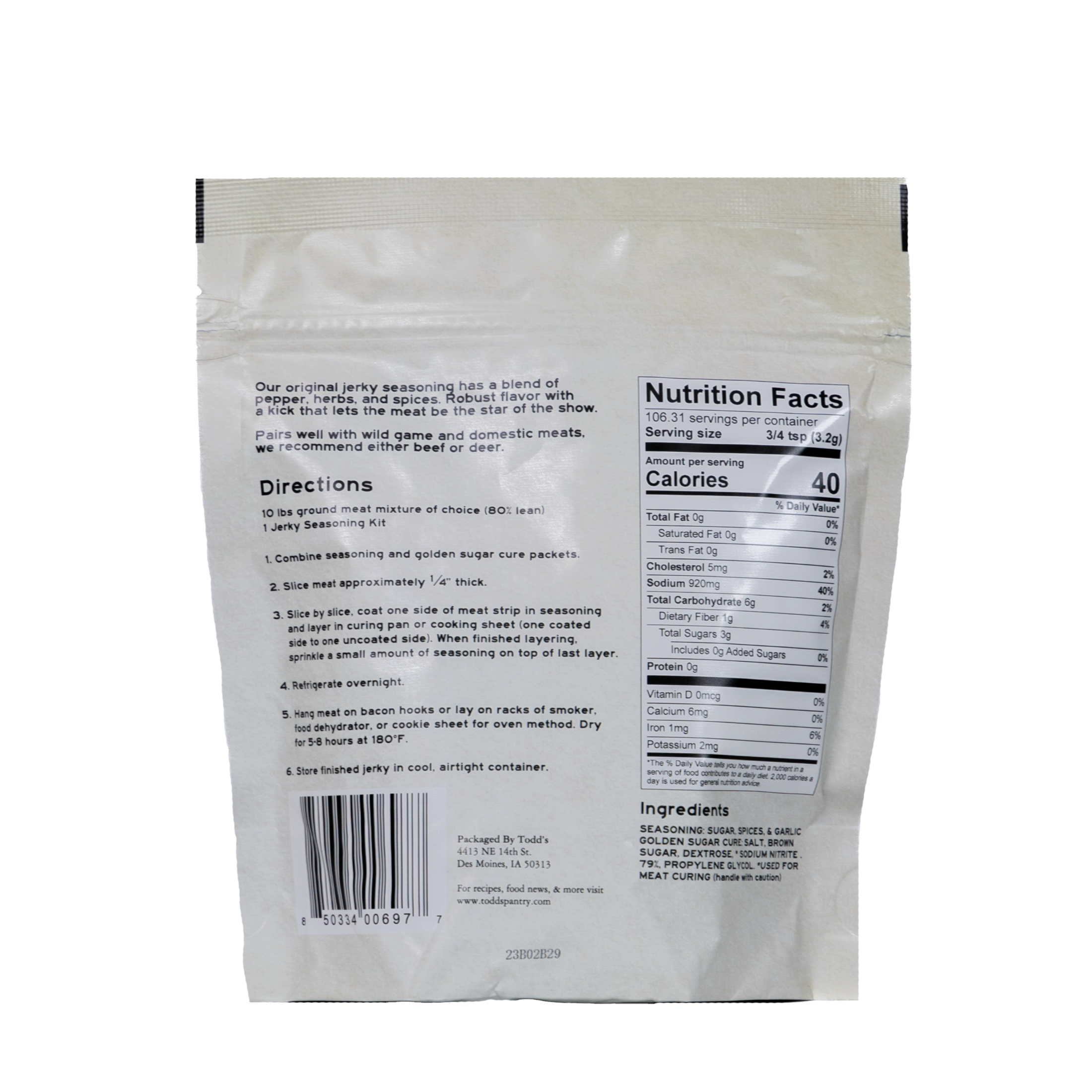 Kit Includes: 4oz Jerky Seasoning, 8oz Golden Sugar Cure